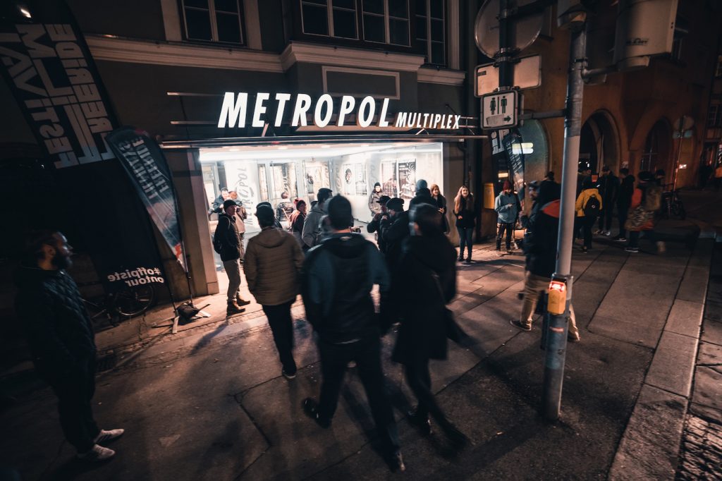 Das Metropol ist das Premierenkino in Innsbruck und bietet mit Platz für 500 Besucher den größten Kinosaal der Stadt. Für uns ist es ein besonderer Ort, denn seit 2012 startet das Freeride Filmfestival traditionell hier in diesem Kino. Die Stimmung ist jedes Mal großartig, hier trifft sich regelmäßig die Innsbrucker Freeride-Szene. Und bevor wir mit dem Nightliner losfahren, feiern wir den Tour-Auftakt auf der anderen Inn-Seite spontan in einem der lässigen Clubs und Lokale.