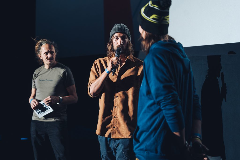 Bei den FFF-Stopps in Zürich und Engelberg (Fotos siehe unten) war viel lokale Prominenz dabei. Die beiden Westschweizer Freerider und Filmhelden Yann Rausis („From Source“) und Laurent De Martin („Simply“). Dazu Marco Tribelhorn mit seinem Movie „Na Vida de Nëi“ über Freeride-Weltmeisterin Arianna Tricomi. Und Fotograf Ruedi Flück war auch dabei.